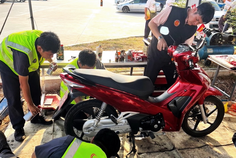 นายฐิติปกรณ์ ภคุโล เปิดเผยว่า วิทยาลัยฯ ได้นำนักเรียน นักศึกษาสาขาช่างยนต์ ร่วมเป็นทีมช่างอาสา ให้บริการตรวจสภาพรถยนต์และรถจักรยานยนต์โดยไม่เสียค่าใช้จ่าย พร้อมซ่อมแซมเบื้องต้นในกรณีฉุกเฉิน ภายใต้การดูแลของอาจารย์ผู้เชี่ยวชาญ ภายในจุดบริการ มีบริการตรวจเช็ครถ เปลี่ยนถ่ายน้ำมันเครื่อง ซ่อมแซมเบื้องต้น ให้คำแนะนำเส้นทาง เพื่ออำนวยความสะดวกและดูแลความปลอดภัยของผู้ใช้รถใช้ถนนตลอดช่วง 7 วันอันตรายเทศกาลสงกรานต์ ซึ่งนอกจากช่วยเพิ่มความปลอดภัยบนท้องถนนแล้ว ยังเป็นการช่วยเสริมสร้างทักษะวิชาชีพ ประสบการณ์จริงและปลูกฝังจิตสำนึกจิตอาสาให้กับนักเรียน นักศึกษา อาชีวะอาสาอีกด้วย
