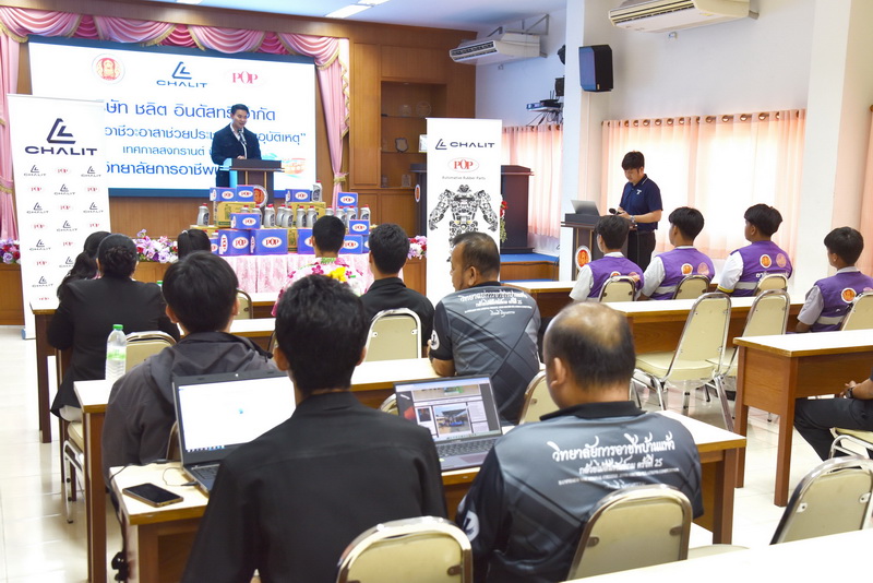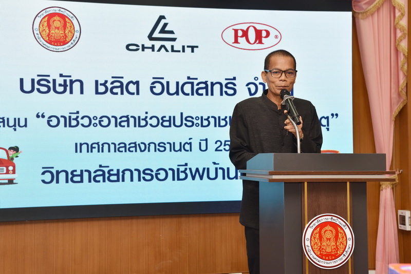 โอกาสนี้ นายชวิศ ยงเห็นเจริญ กรรมการผู้จัดการ บริษัท ชลิต อินดัสทรี จำกัด ได้มอบวัสดุอุปกรณ์ที่จำเป็นสำหรับการตรวจซ่อมบำรุงรถยนต์และรถจักรยานยนต์ เพื่อสนับสนุนโครงการ “อาชีวะ-ขนส่งอาสา รณรงค์ลดอุบัติเหตุทางถนนช่วงเทศกาลสงกรานต์ 2569” โดยมี นายฐิติปกรณ์ ภคุโล ผู้อำนวยการวิทยาลัยการอาชีพบ้านแพ้ว เป็นผู้รับมอบ พร้อมด้วยคณะผู้บริหาร ครู และตัวแทนนักเรียน นักศึกษา ณ ห้องประชุมอาคารวิทยบริการ วิทยาลัยการอาชีพบ้านแพ้ว